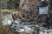 C'est à l'automne de 1846 que le notaire André Bouchard dit Lavallée acquiert des lots pour faire construire un premier moulin à scie sur la rivière aux Mulets. Ces lots avaient été concédés par la Couronne à son beau-père, Casimir Testard de Montigny. Comme Bouchard est aussi agent des terres de la Couronne, il doit quitter Sainte-Adèle au début des années 1870 lorsque cette agence des terres est relocalisée à Montréal. Il vend donc le moulin à scie aux Bohémier, une famille de cultivateurs de Sainte-Anne-des-Plaines, qui le conserve jusqu'au tournant du XXe eiècle. Le moulin à scie a possiblement cessé ses opérations entre temps, puisqu'en 1898 il n'est pas mentionné dans la vente du terrain et qu'en 1903, il est mentionné dans la vente subséquente que la digue doit être reconstruite. En 1925, il y a trois moulins sur le site : un moulin à farine, un moulin à scie et un moulin à carde.